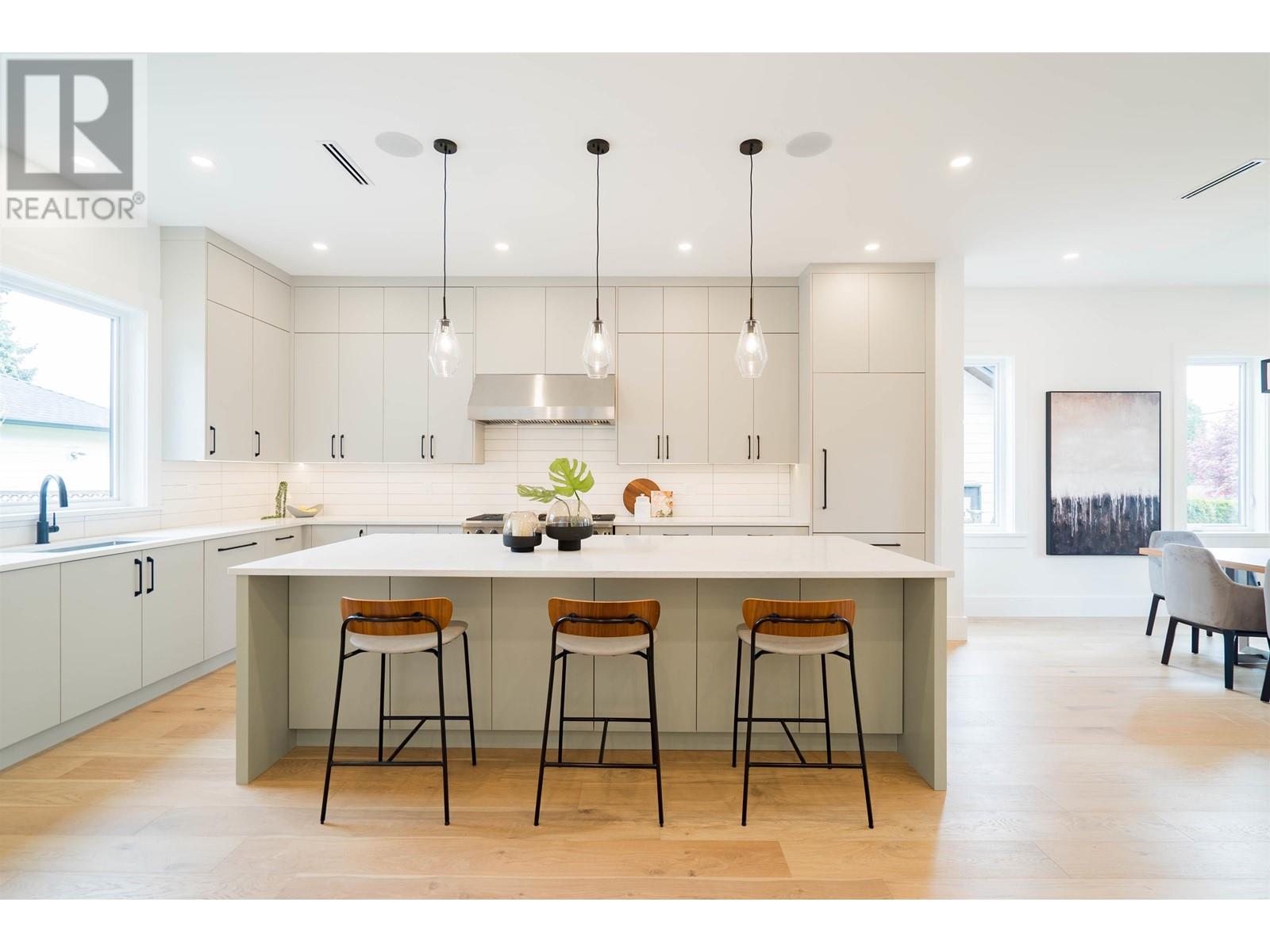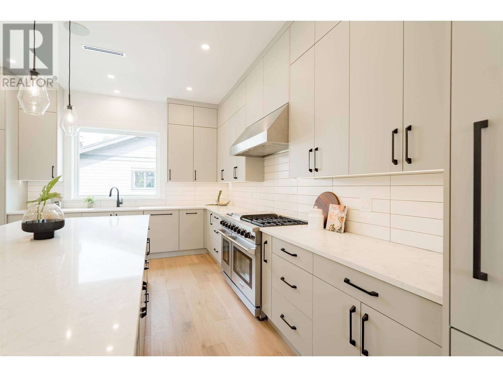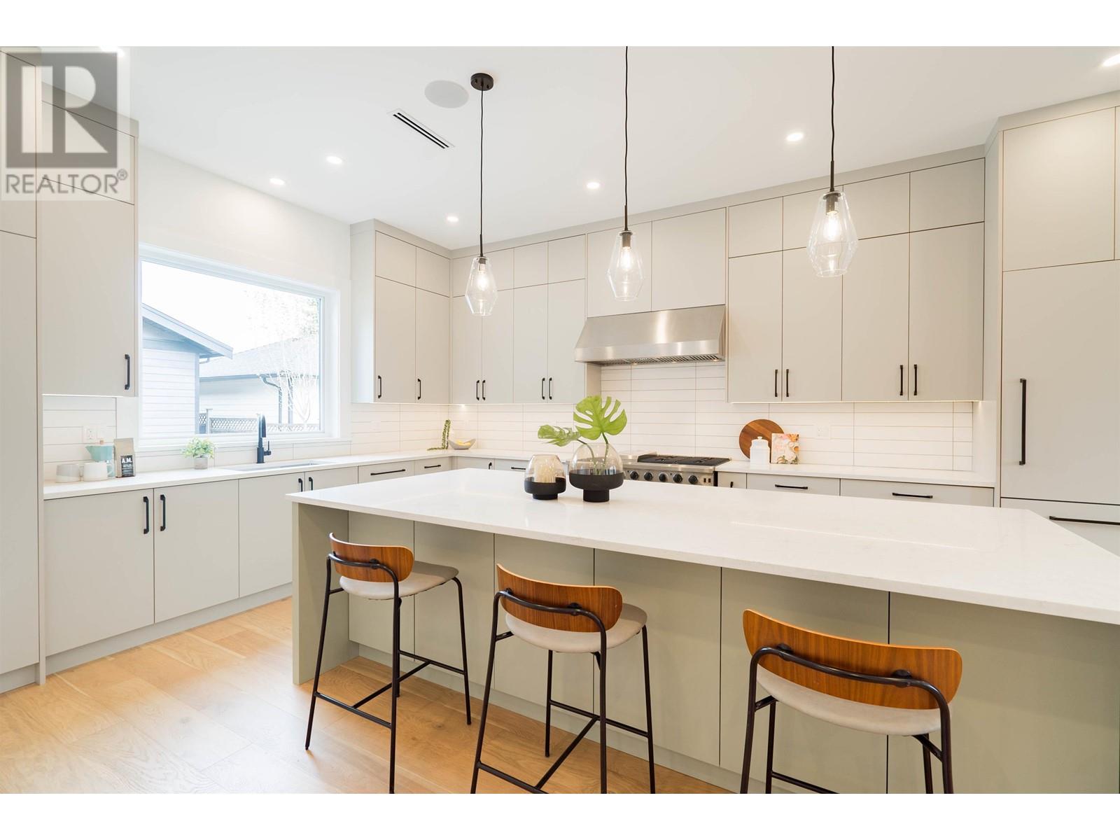 Brand New Custom Built modern craftsman with 5 bed 6 bath incl 1 bed suite over 3580sf of luxury finishes on 6929sf lot! Quiet tree lined street in highly desired - The Heights in New West. Fantastic open concept 10 ft ceiling main flr feat a dream kitchen with 10 foot island, custom 2 tone cabinets, integrated Fulgor appliances, 48 inch gas range, built in pantry, bedroom/office, mud room, feature wall fireplace in living, oversized French doors out to covered patio with cedar soffits & skylights, huge fully fenced backyard with irrigation, 2 car garage. Up 3 good sized beds & laundry room, 2 with ensuites incl a dream primary with vaulted ceilings, large walk-in, & gorgeous 5 pce ensuite. Down rec room & 1 bed suite. Great location: steps to parks, schools, shopping on Columbia, few mins to HWY1. (id:58403)
