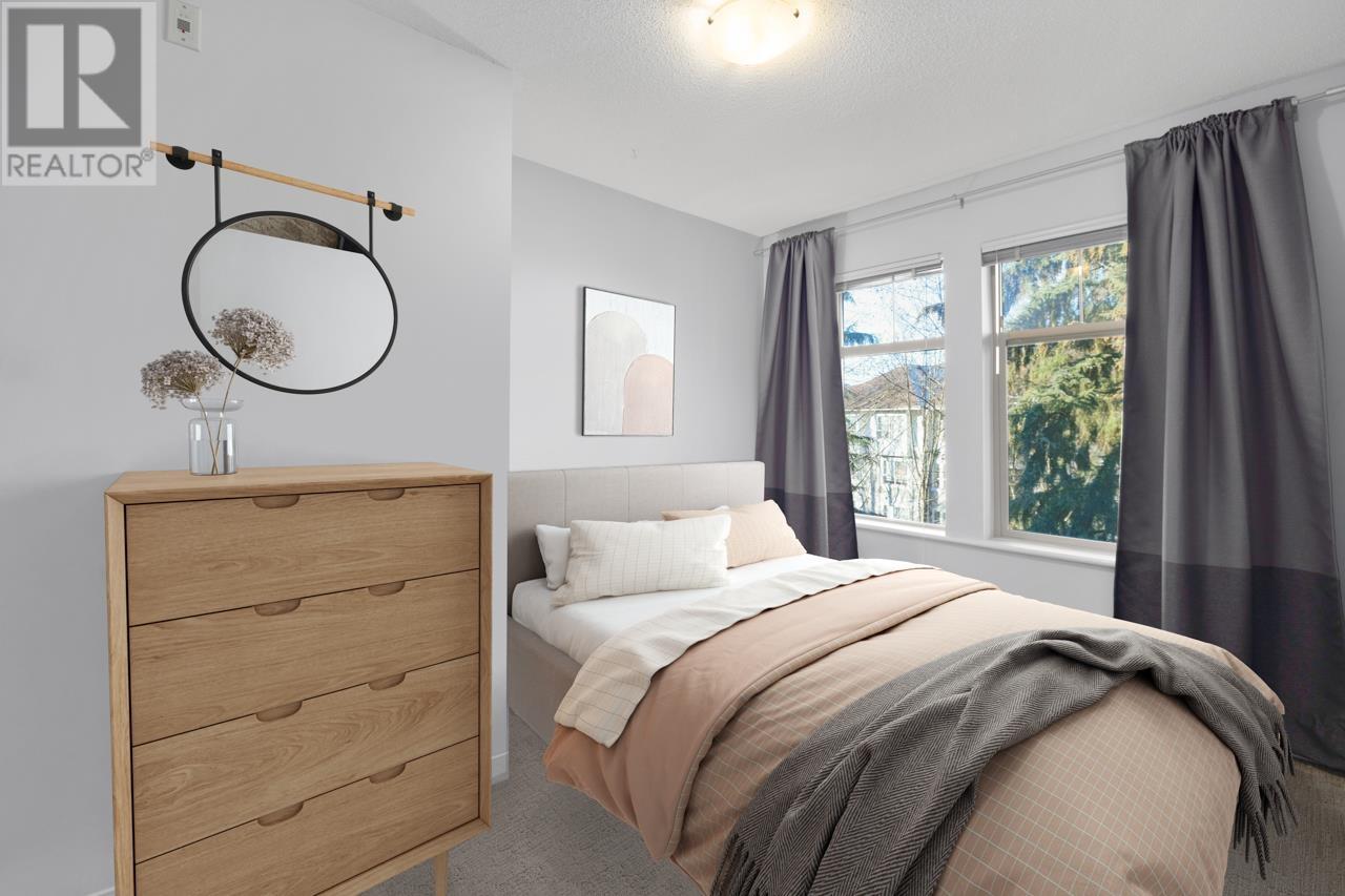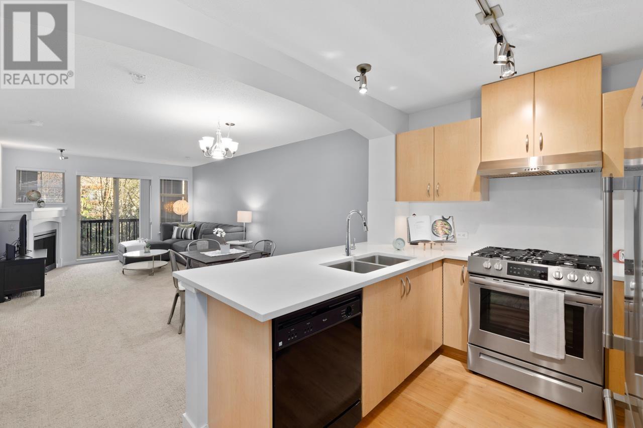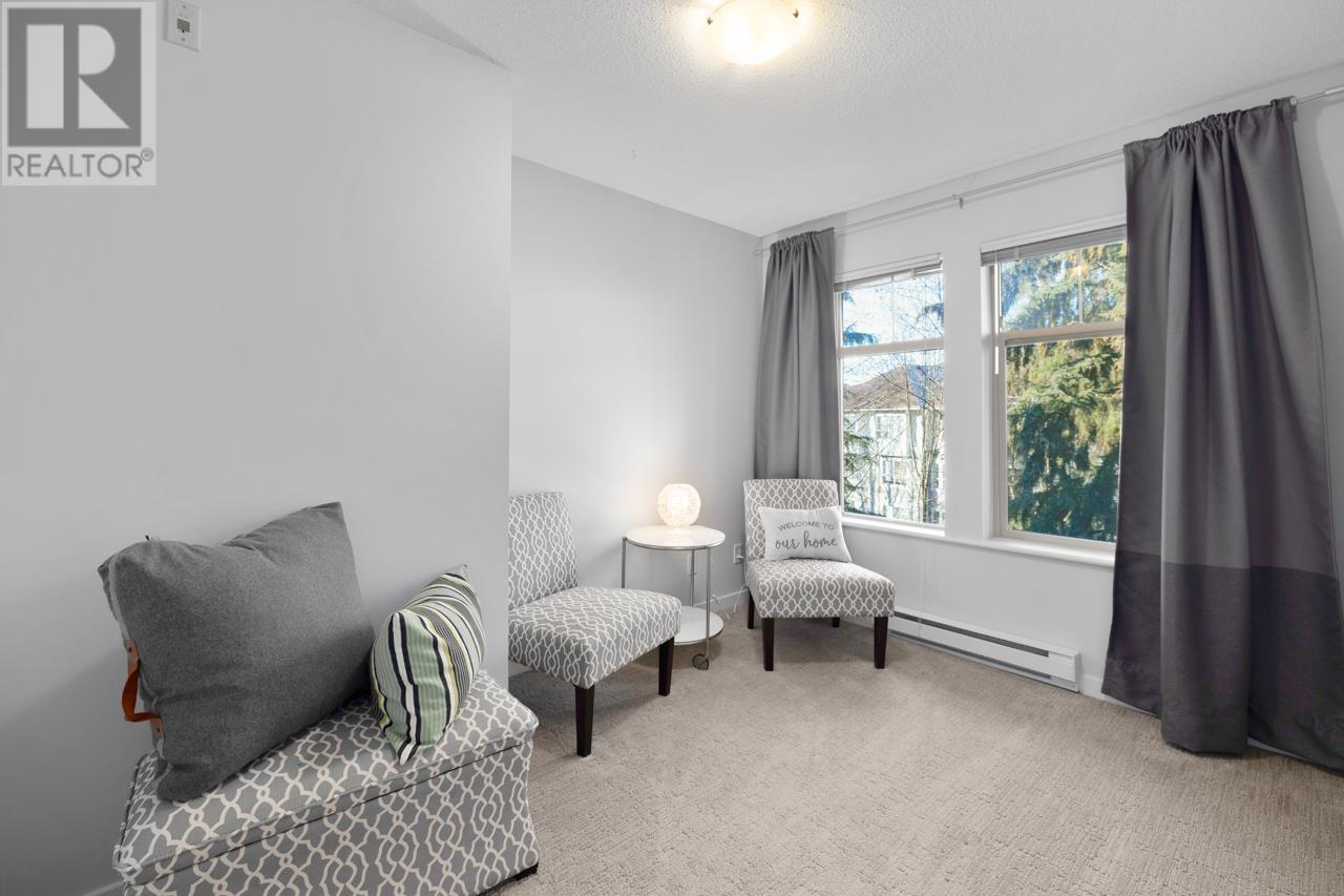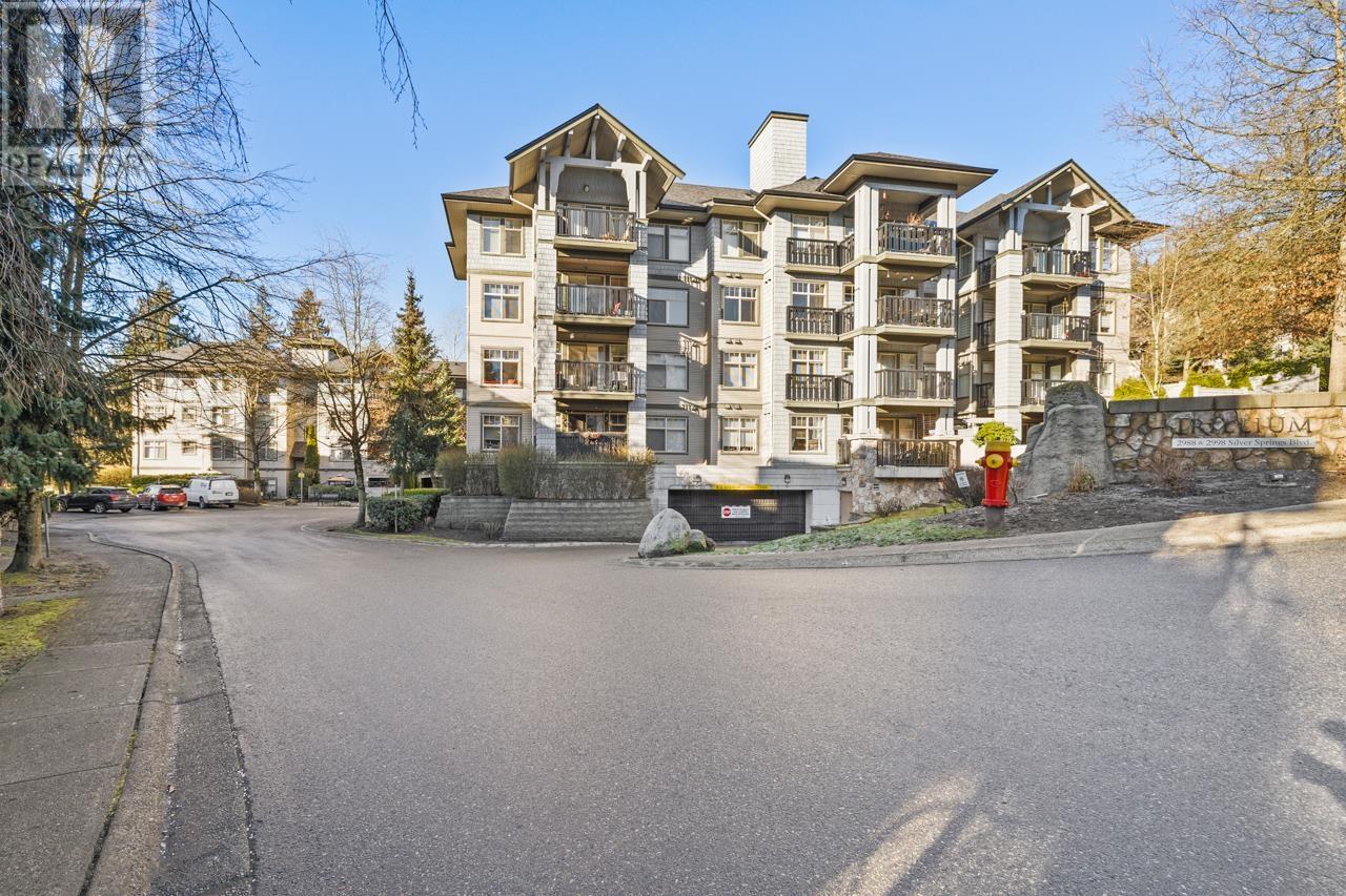 RARE 2 bed 2 bath TOP FLOOR unit with 2 parking stalls in popular Silver Springs, built by reputable Polygon. Practical open concept layout with no wasted space. 2 separated bdrms for extra privacy! HUGE master bdrm (bring the king bed) features W/I closet & luxurious ensuite. Kitchen has S/S appliances, quartz counters, gas range (incl. in strata fee) & breakfast bar. Spacious living & dining area opens to your TRANQUIL TREED EXPOSURE from the balcony - a private outlook with no one looking in! 2 PARKING STALLS & 1 Locker. BONUS: Access to the community clubhouse - Cascade Club - with outdoor pool, hot tub, fitness studio, party rm & more. Amazing LOCATION - WALK to the Skytrain, all lvls of schools, Douglas College, Town Centre Park & Lafarge Lake. Coq Centre, Rec Centre, dining all within mins. (id:58403)